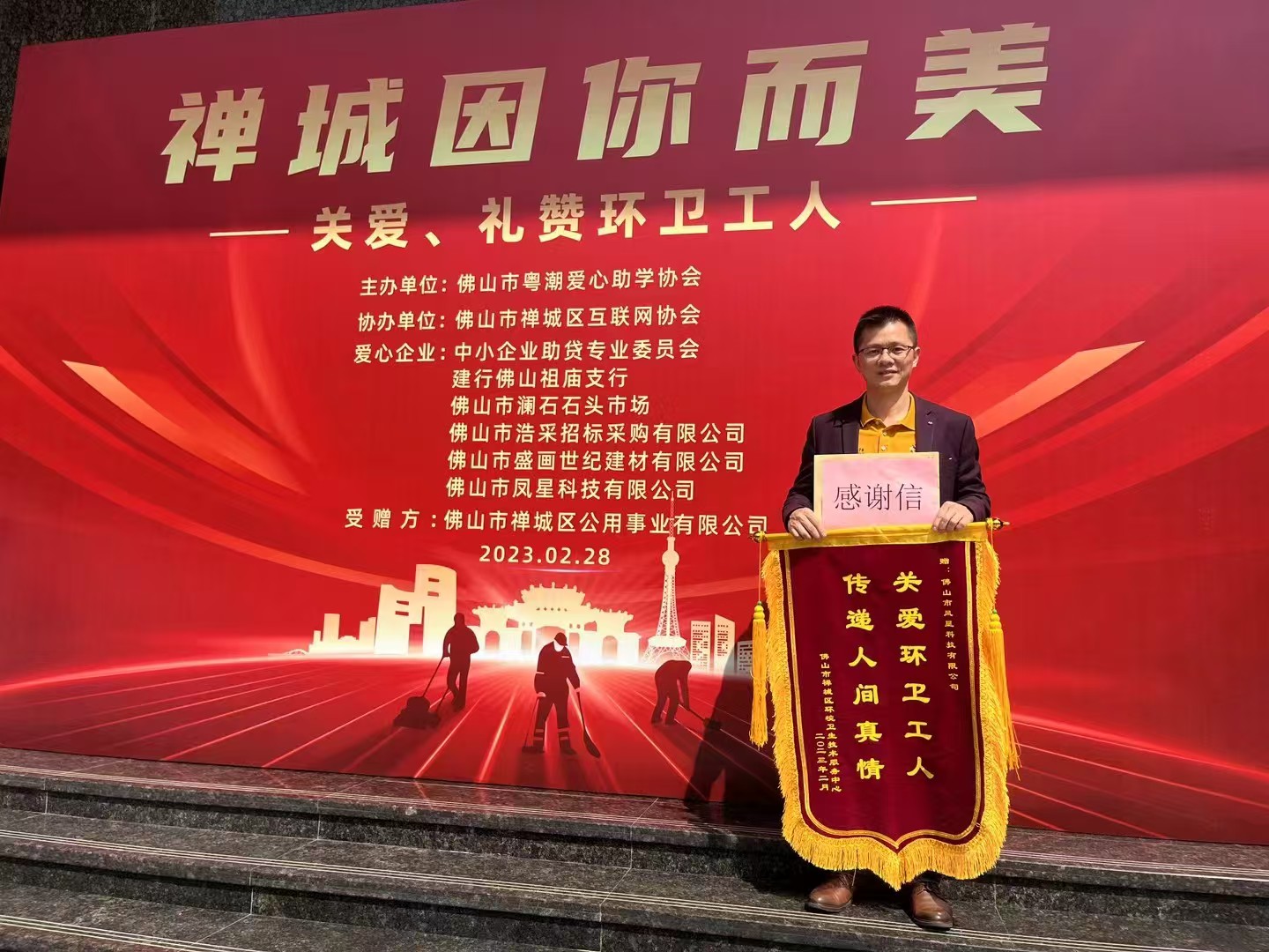 3• 2023年2月,凤星科技响应禅城区文明城市创建,为一线环卫工人捐赠饮用水、保暖物资,致敬城市美容师;报道链接:https://xmapp.fstv.com.cn/h5/#/pages/detail/videoDetail?isAlbum=0&id=364576&share=1